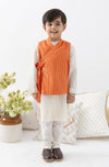 Pre-Order: Boy Stripes Lurex 3 Pc Bundi Set-Orange