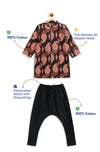 Elevate your little one’s festive style with this elegant black kurta set featuring a timeless paisley print. Crafted from 100% pure cotton, this outfit is as breathable as it is stylish, perfect for long celebrations. The intricate paisley motif adds a touch of heritage charm, while the classic silhouette keeps it versatile for both traditional functions and family gatherings.