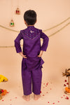 Dress your little one in royal charm with this Banarasi Parrot Kurta Set featuring an illusion jacket style kurta paired with straight-fit pyjamas for a clean and traditional silhouette. Perfect for festive occasions, weddings, or cultural celebrations, this kurta set blends comfort with effortless ethnic style — just right for your little trendsetter.