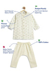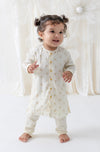 Pre-Order: Baby Boy Foil Print Kurta Pyjama Set - Cream