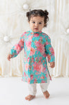 Effortlessly festive and undeniably cute, this floral kurta set will surely fetch your little one a lot of compliments. Crafted in breathable cotton, the kurta features an all-over print featuring big, bright roses. Comes with a full front opening for fuss-free dressing. Paired with comfortable cotton pants, it's an ideal choice for summer celebrations, at-home festivities, or weddings.