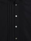 Design Detail: Pin tucks detail. Satin finishes on band collar collar and cuff.