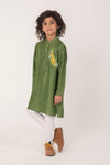 Cheetah Embroidered Chest Motif Kurta in Green a perfect blend of elegance and playful charm.