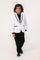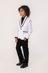 CLASSIC WHITE TUXEDO WITH BLACK PANTS.