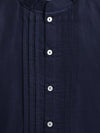 Design Detail: Pin tucks detail. Satin finishes on band collar collar and cuff.