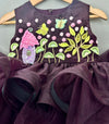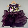 This stunning Wine coloured party dress is designed to make your little one shine at every celebration. The sleeveless bodice features intricate hand embroidery with charming motifs of butterflies, flowers, and a fairy-tale house, adding a whimsical touch. The voluminous layered organza creates a dramatic flared silhouette, perfect for twirling and making a statement. A blend of playful embroidery and elegant design, this dress is a must-have for festive occasions and parties.