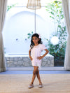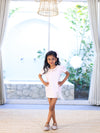Dress with a bow hairclip adorned with pearls