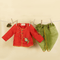 TOMATO RED ANGARKHA WITH HAND EMBROIDERED FISH MOTIF PAIRED WITH GREEN DHOTI