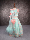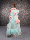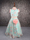 Lehenga with intricate colourful sequence embroidery and flower attached at the waist. Lehenga with intricate colourful sequence embroidery and flower attached at waist.