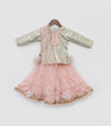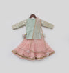 Blue chanderi kurti and peach net sharara, a beautiful combination of this summer wedding season. A must-have style for your little girl.