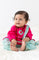 Now here’s the perfect outfit for your ‘ghar ki laxmi’. The bright pink pleated kurta features Laxmi feet motif, perfect to mark auspicious beginnings. Paired with a vibrant blue salwar with golden foil print and a soft chiffon dupatta, the outfit is traditional yet playful. The Kurta comes with a shoulder loop to keep the dupatta in place.