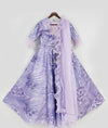 It's time to slay in the most fashionable way in our purple lehenga set in sequince fabric. It’s a contemporary take on a classic style and is enhanced with the rich organza dupatta with silver finishing. It features a round neck, dori tassels on the back, and fur attached on the sleeves.