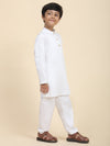 Introducing our exquisite Kurta Pajama Set, specially crafted for boys aged between 3 months to 15 years. This set combines the elegance of blend linen kurta with the comfort of cotton pajamas, creating a perfect blend of style and ease for your child.