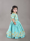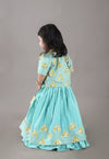 Pre-Order: Aqua Green Flower Embroidery Blouse And Ghagara Set