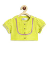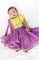 A little tradition, a little twirl! This festive lehenga set is made to make your baby girl shine on special occasions and festivals! Featuring a vibrant green blouse paired with a purple lehenga, the set comes with golden foil print that adds a touch of celebration. Crafted entirely in soft viscose for a lightweight feel, it comes with a matching chiffon dupatta.