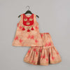 Geometrical Printed Sleeveless Kurti Top / Moon And Star Hand Embroidery On The Front Of The Yoke Of The Top / Stylish Lace Embellishment On The Top Yoke / Geometrical Printed Sharara / Lace On The Sharara
