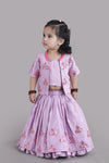 Lavender Flower Embroidery Front Open Jacket With Pleated Neck, Small Crop Top, Sequence Highlight On Flower Embroidery, Flower Embroidery Ghagara With Sequence Highlight, Can-Can Attached In Ghagara, And Flower Embroidery Heavy Latkan