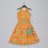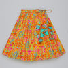 Floral Printed Halter Blouse With Mirror Work And Embroidery On The Front / Knot At The Back Of Blouse / Frill On The Neck And Armhole / Stylish Latkan / Floral Printed Ghagara