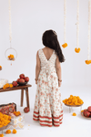 A VIBRANT FESTIVE OUTFIT FOR GIRLS CRAFTED IN SOFT MUSLIN FABRIC FEATURING JAAL PRINTED FABRIC IN IVORY COLOR AND STRIPES PRINTED BLOUSE IN MUSLIN FABRIC