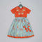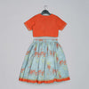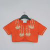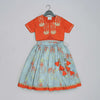 Pre-Order: Orange Hand Embroidered Blouse With Grey Geometrical Printed Ghagara Set