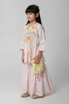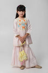 PASTEL PINK SHARARA SET, WITH CHIC PATCHWORK AND INTRICATE EMBROIDERY. THE SHARAR PANTS ADD VOLUME AND FLAIR GIVING YOUR LOOK THAT PERFECT FESTIVE LOOK. GIVE A BEAUTIFUL VIBRANT POTLI BAD ALONG