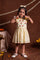 Let your little one step into the season of fun with this Watermelon Motif Frock Set. Crafted in a soft pastel yellow base, the frock features hand-embroidered watermelon slices in a playful grid with light frills on neck and sleeves, adding a juicy splash of charm. The frilly sleeves and gathered waist create a silhouette that’s both classic and comfortable for all-day wear.