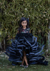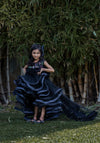 The Pre-Order: Beautiful Ruffle Net Black Gown with Drape was built with people like you in mind. Something to keep you happy. Every. Single. Day.