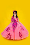 Pre-Order: Flamingo pink gown with handcrafted butterfly wings