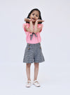 A smart and casual pick is a much needed for our little girl this season. Pick this beautiful pink top with black checked printed shorts. A beautiful colour contrast of pink and black.