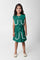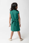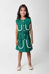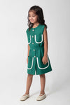 EMRALD GREEN BELTED DRESS WITH WHITE POCKET DETAILING AND EMBELLISHED BUTTONS