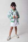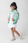 MINT AND WHITE SEQUENCED BOMBER JACKET WITH ZIP CLOSURE