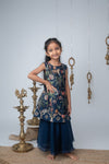 This elegant navy blue palazzo set is a perfect blend of comfort and festive charm, making it ideal for parties and special occasions. The set features a sleeveless A-line top adorned with vibrant jungle and floral prints. The top is highlighted with a cutwork zari hand embroidery at the hem. It is paired with flared solid navy palazzo pants crafted from flowy organza fabric, ensuring ease of movement and all-day comfort.