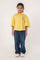 YELLOW SHIRT WITH PEAR EMBROIDERY MOTIF ON CHEST. FANCY BELL SLEEVES.