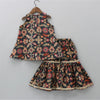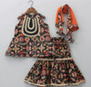 Pre-Order: Black Ikkat Print Top With Sharara Set With Dupatta