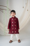 Every product is unique, just like you. If you're looking for a product that fits the mold of your life, the Pre-Order: Boys Maroon Embroidered Kurta Set is for you.