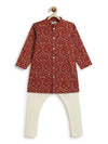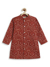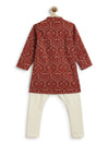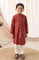 Pre-Order: Boy Floral Print Kurta Pyjama Set-Maroon
