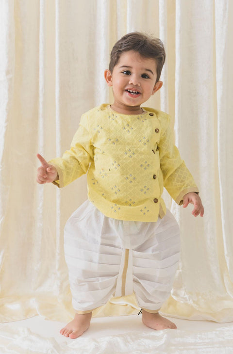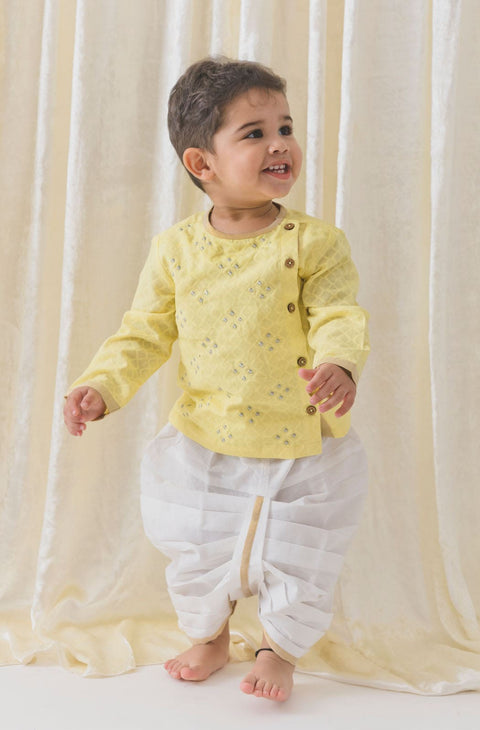 Pre-Order: Baby Boys Desi Boys Dhoti Kurta Set - Yellow