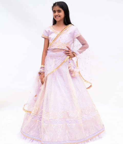 Pre-Order: Lilac Gota Embroidery Lehenga with Choli & Boti Net Dupatta