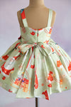 Mint green Christmas themed printed dress with tie back.
