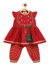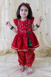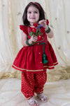 Imagine if you could be satisfied and content with your purchase. That can very much be your reality with the Baby Girl Chanderi Silk Ruffle Sleeves Angrakha Set - Red.