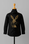 Iconic Bugs Bunny hand embroidery makes this designer shirt a playful and stylish statement piece.