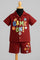 Maroon co-ord with playful “GAME ON!” typography and sports ball graphics — energetic and sporty.