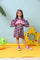 This is a super duper cool abstract print co-ord set with a twist of frill top and bandana as a hair accessory. Shirt length is long shirt length, shorts length is waist to above knee length, frill top length is crop top length and sleeve length is full sleeve length.