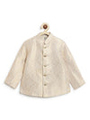 A pastel brocade bandhgala tailored to perfection, complete with shoulder pads and metal buttons for that mini-maharaja look. Expertly crafted to stay comfy even for newborns, it’s your young gentleman’s picture-perfect wedding moment. Dress him up and let tradition shine, the Tiber Taber way!