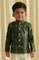 Crafted in exquisite green brocade, this bandhgala blends modern elegance with timeless heritage. Sharp tailoring, shoulder pads and royal metal buttons complete the look. Perfect for wedding celebrations —you won’t be able to take your eyes off him!