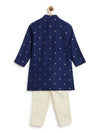 A sleek silk-viscose kurta featuring delicate woven butis and a lustrous finish paired with smart pants for that princely stride. Comfortable enough for kids to run around, yet dressy for every celebration. Style it solo or layer with a jacket, the perfect versatile festive staple!