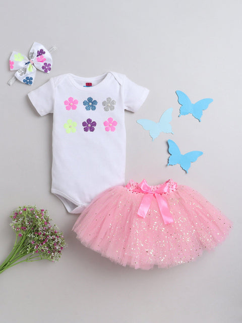 Pre-Order: Glitter Flower Bodysuit, skirt & Hairband- White