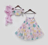 - TOP : Lilac Sequence Flower Embroidery Choli with Ruffel Dupatta