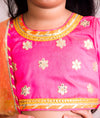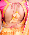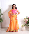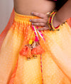 Make your little one shine with our Orange Organza Lehenga Choli Set for girls. This stunning ensemble features a silk choli with a soft lining, beautifully finished with delicate lace, a round neck, and charming dori tassels at the back. The organza lehenga, lined with a comfortable cotton base, is adorned with elegant laces and tassels at the waist, adding a touch of grace to every twirl. Paired with a printed organza dupatta, complete with lace and tassel finishing, this set is perfect for any festive occasion, combining traditional elegance with modern comfort for your child.